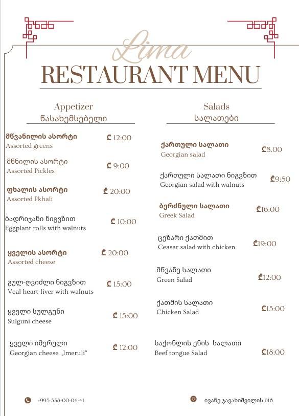 Restaurant "Lima" - a place where delicious cuisine, warm hospitality, and a pleasant atmosphere come together.