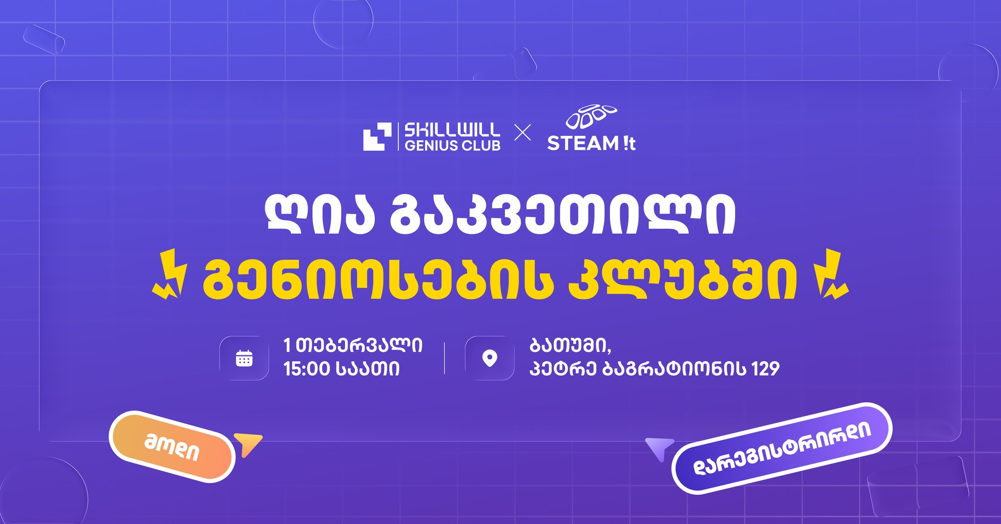 1 თებერვალს, 15:00 საათზე — გენიოსების კლუბი ბათუმში ღია გაკვეთილზე გიწვევთ