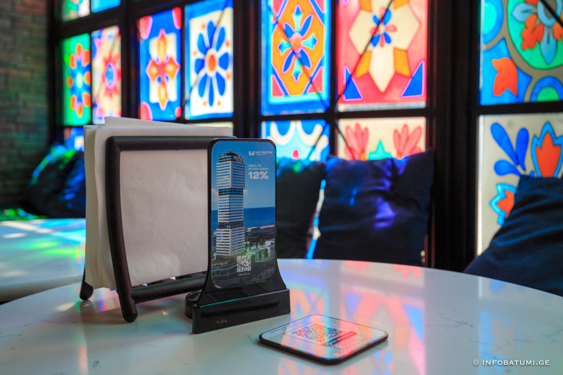 • დარბაზი მაგიდა: 1 ტერასა, 1 შიდა დარბაზი, სულ 28 მაგიდა (100 პერსონა)