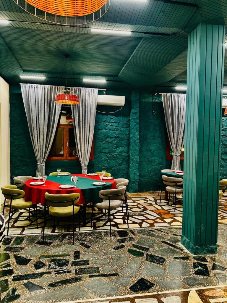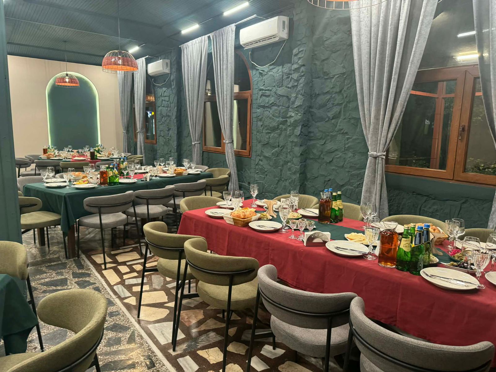 • დარბაზი მაგიდა: 60 პერსონა სალონში, ვიპ- იზოლირებული სივრცე 30 პერსონა, ვერანდა, ეზო გამწვანებით