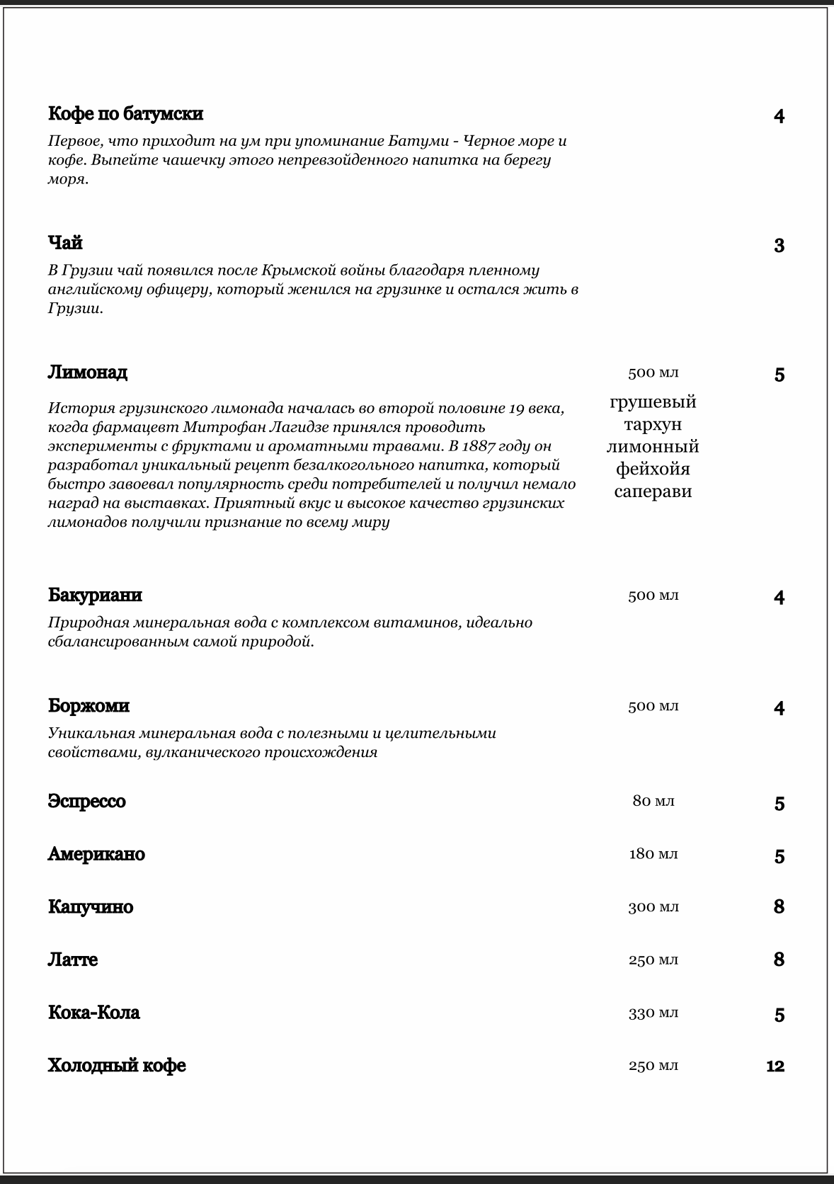 Наш ресторан, расположенный в Батуми, на новом бульваре, прямо на побережье, предлагает идеальную атмосферу для отдыха. Здесь вы можете насладиться вкусными блюдами в уютной, элегантной обстановке, где шум моря и потрясающие виды создают уникальную атмосферу.